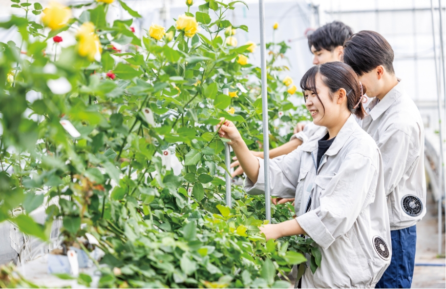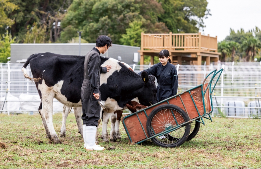 広さが東京ドーム6個分に相当する農場では野菜、花、果樹などを栽培し、また、乳牛、豚、山羊などを飼育しています。キャンパスにいながらアグリサイエンス実習、大型動物の飼育管理を学ぶことができます。未来型温室群「スマートアグリ温室」も備えています。