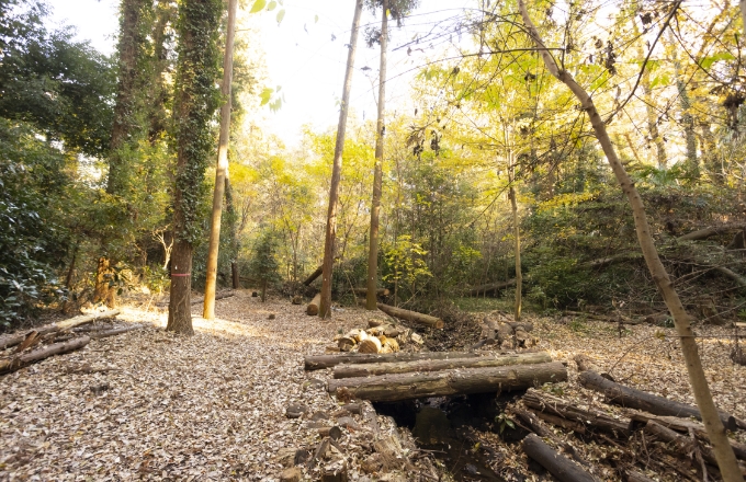 キャンパスと隣接した約5ヘクタールの平地林で、クヌギ、コナラ、シラカシ、アラカシその他の広葉樹で構成されています。学生の実験・実習の貴重なフィールドとして活用され、キノコの栽培をはじめ、里山・雑木林の保護の実験も進められています。