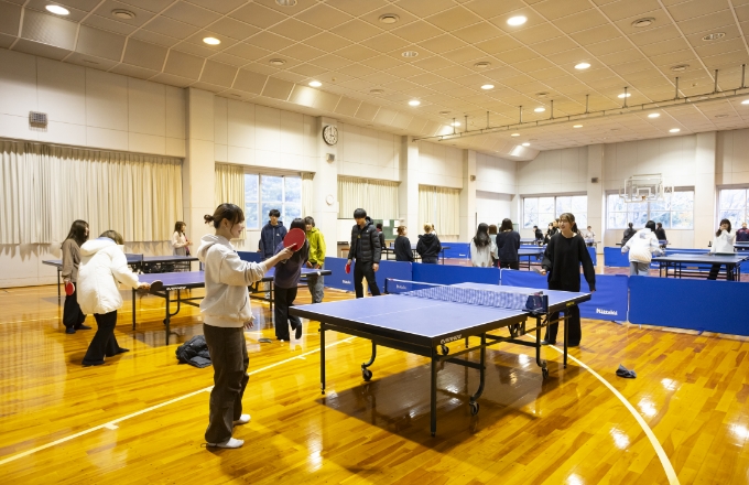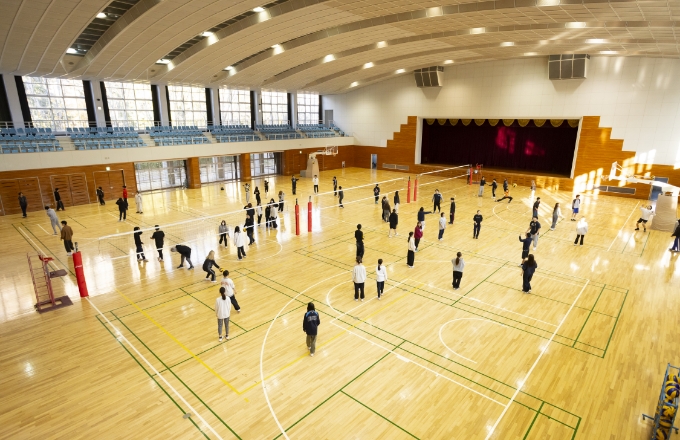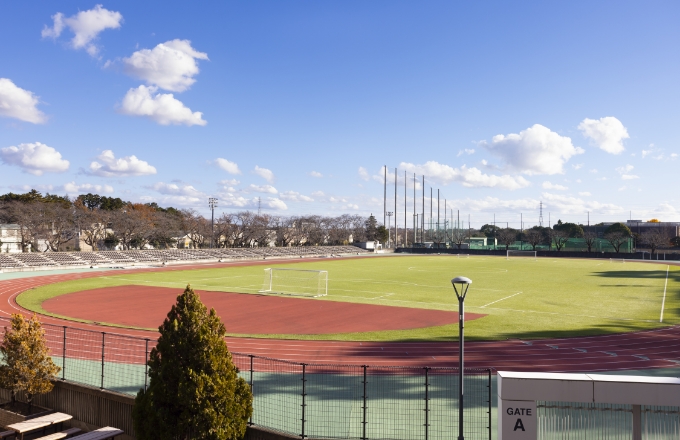 体育館にはバスケットやバレーボールができるアリーナと柔道・剣道・卓球場、トレーニングルームがあります。約2900席の観客席がある大きなグラウンドには、400mの本格的な陸上トラックと人工芝を敷き詰めた綺麗なフィールドが広がっています。充実した学生生活の一助になっています。