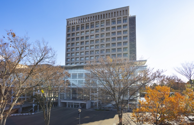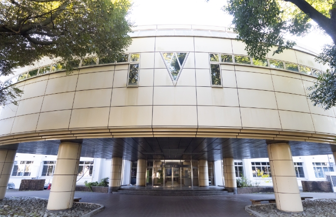 地下2階、地上14階建ての高さが約74mある学部で一番高い建物。約500人を収容する大講堂もあり、講演会、シンポジウムなど多目的に利用されています。人と人との交流の場としての役割も備え、キャンパスのシンボルとなっています。