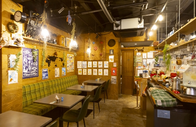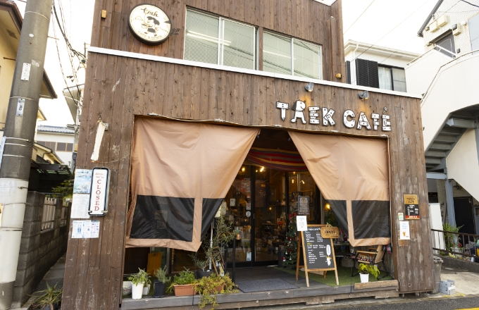 六会日大前駅から徒歩約2分のカフェ。山小屋風の空間で、キャンプを趣味とする店主が手掛けるメニューを楽しめます。