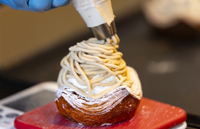 六会日大前駅から徒歩6分のパン屋。種類豊富な調理パンや菓子パンが揃い、朝食や軽食にぴったりです。